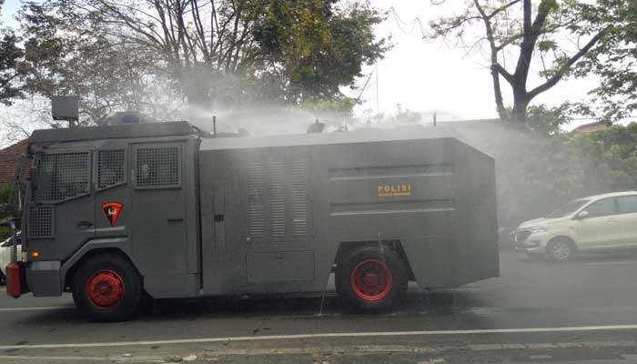Penyemprotan dilakukan dengan menggunakan tiga mobil water canon milik Direktorat Samapta dan Brimobda Polda Sumatera Utara, mulai dari depan Mako Brimob, Jalan KH Wahid Hasyim, Jalan Pattimura, simpang Jalan Sudirman dan Jalan WR. Supratman.