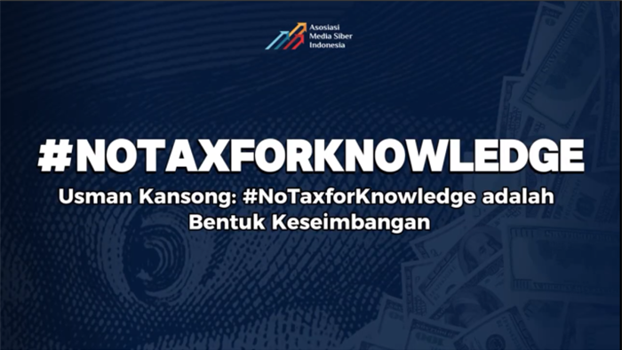 JAKARTA, KabarMedan.com | Asosiasi Media Siber Indonesia (AMSI) turut mengkampanyekan #NoTaxforKnowledge sebagai bentuk dorongan agar akses terhadap ilmu pengetahuan semakin mudah, inklusif dan bebas hambatan bagi publik secara luas. Seruan AMSI ini agar akses terhadap ilmu pengetahuan tidak dibebani pajak dan masyarakat dapat memperoleh informasi yang berkualitas.