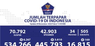 Kesembuhan COVID-19 Terus Bertambah Menjadi 445.793 Orang