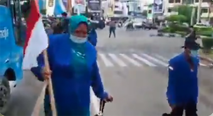 MEDAN, KabarMedan.com | Beredar di media sosial video seorang ibu berseragam biru baru pulang mengikuti aksi demonstrasi. Video tersebit dikaitkan dengan aksi demonstrasi yang digelar mahasiswa yang berakhir ricuh hari ini, Senin (11/4/2022).