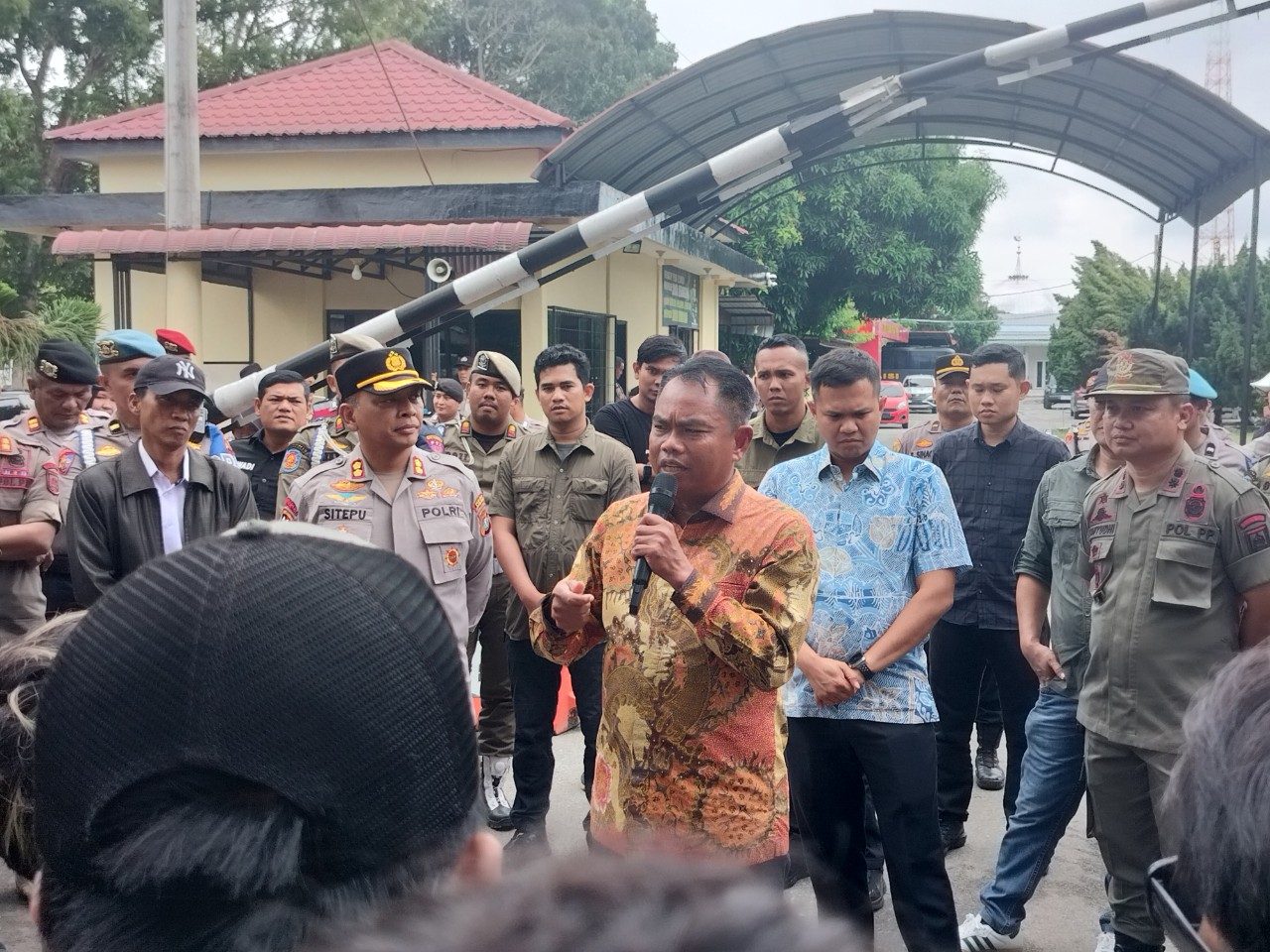 SERDANG BEDAGAI, KabarMedan.com | Bupati Serdang Bedagai (Sergai) Darma Wijaya bersama Wakil Bupati Adlin Tambunan dan Kapolres Sergai AKBP Jhon Herry Rakuta Sitepu menerima aspirasi belasan mahasiswa serta masyarakat yang menggelar aksi unjuk rasa damai, Kamis (4/9/2025).