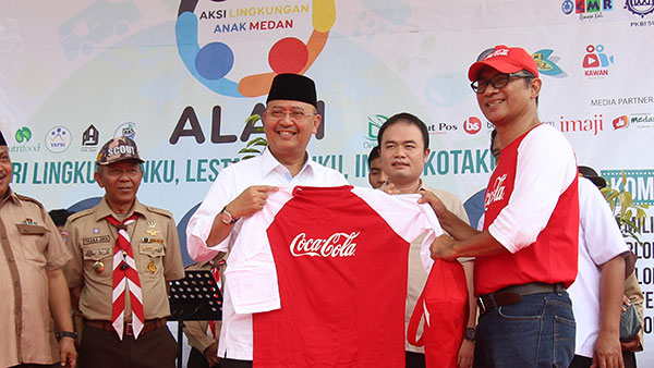 CCAI Medan, perusahaan yang perduli terhadap lingkungan, melalui Ahmad Nasoha selaku Corporate Affairs Executive CCAI secara simbolis memberikan kaos hasil daur ulang yang terbuat dari botol plastik kemasan coca cola kepada Walikota Medan, Dzulmi Eldin.