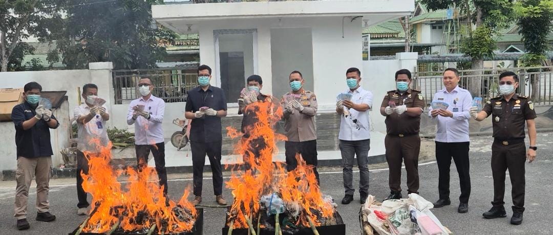 Pemusnahan dipimpin Kepala Kejaksaan Negeri (Kajari) Sergai, Amriyata didampingi Kasi Intelijen, Hasan Afif Muhammad, Kasi BB Rio Batara, Kapolres Sergai, AKBP Jhon Herry Rakuta Sitepu di halaman belakang Kantor Kejari Sergai, Rabu (19/11/2025).