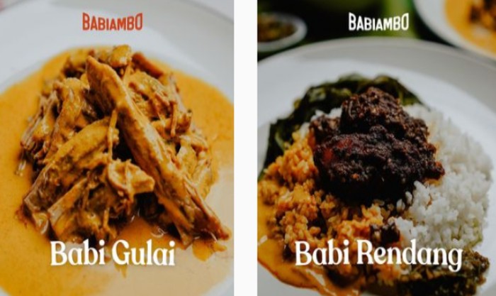 Dalam daftar menu tersebut terdapat misalnya rames spesial babiambo yang terdiri dari nasi putih, babi gulai, babi rendang, sayur singkong dan sambal. Menu itu dihargai Rp48 ribu seporsi.