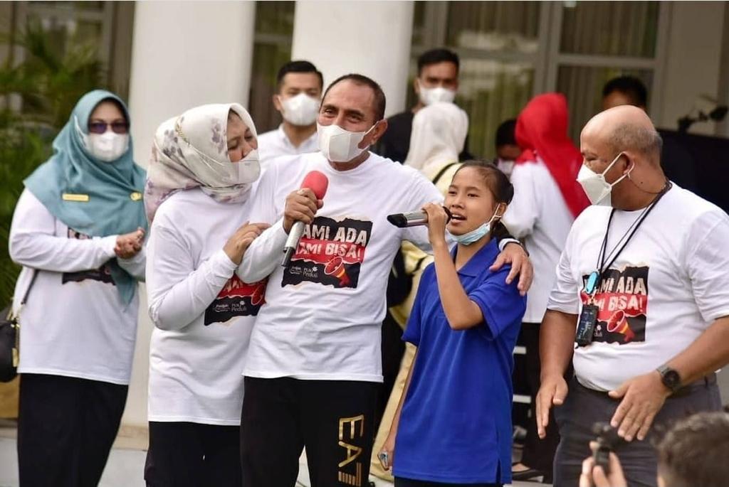 Tampak Gubernur dan ibu bernyanyi bersama para difabel. Kegiatan berlangsung santai dan penuh kekeluargaan ini diinisiasi oleh Khadijah Sharaswaty Indonesia yang didukung oleh PLN Peduli.