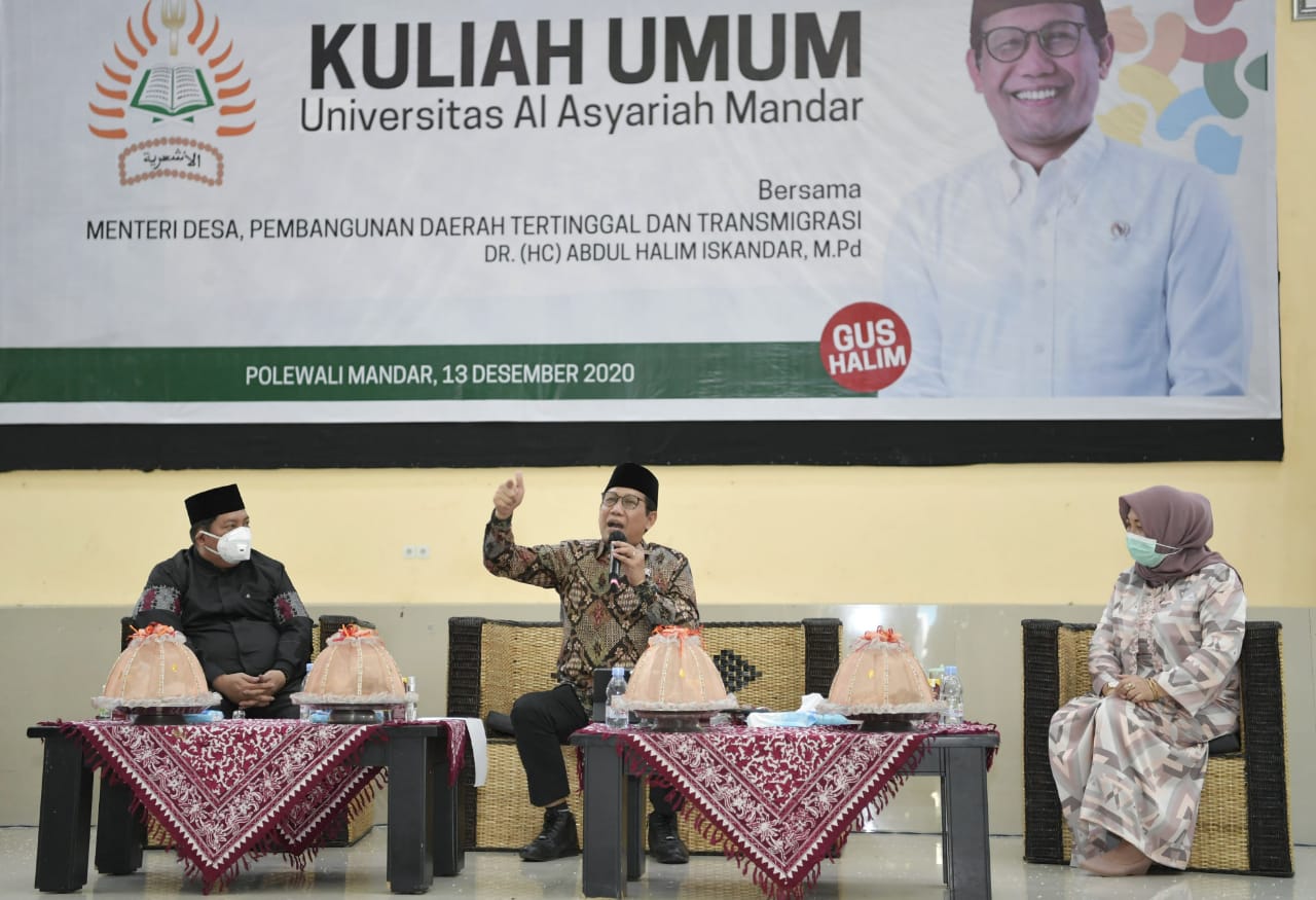 POLEWALI MANDAR, KabarMedan.com | Menteri Desa, Pembangunan Daerah Tertinggal, dan Transmigrasi, Abdul Halim Iskandar mengajak Universitas Al Asyariah Mandar (Unasman) membantu wujudkan pembangunan desa berkelanjutan atau SDGs Desa.