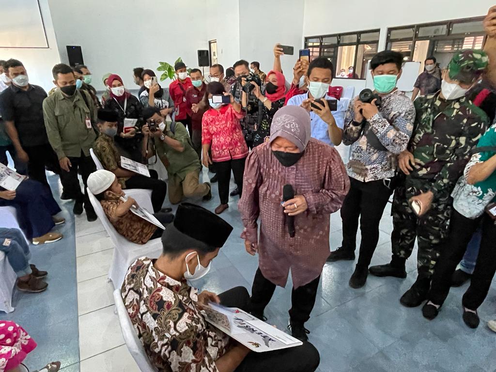 Usai pemberian bantuan, Risma memberikan kesempatan kepada anak-anak penerima bantuan untuk memberikan pertanyaan kepadanya.