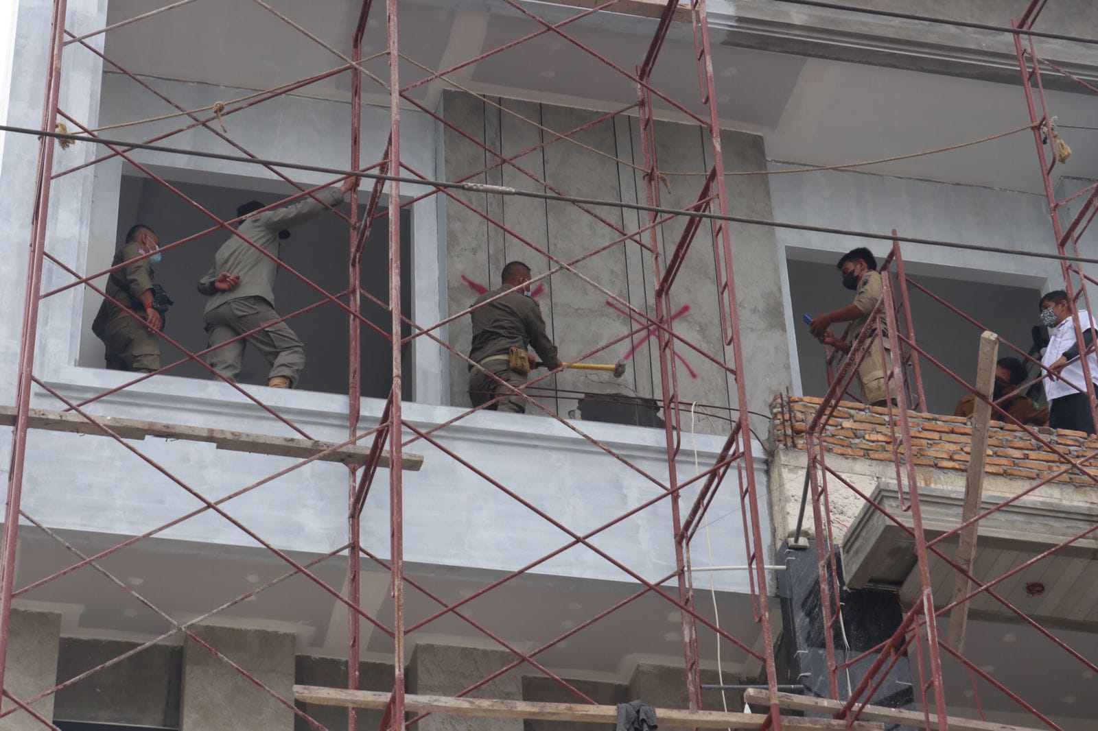 Selain itu, petugas juga menjebol dinding depan lantai tiga, bangunan yang hampir rampung itu.