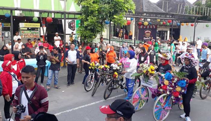 Semarak bunga menghiasi pagi yang cerah di area pusat kuliner itu. Lomba sepeda hias ini digelar Amaliun Foodcourt, Perwosi dan Pecinta Peduli Bunga Brastagi.