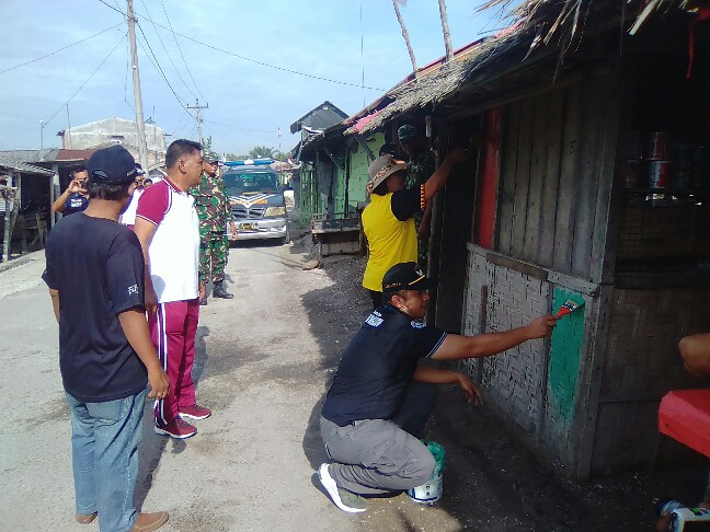 “Untuk memberikan warna baru di Desa ini, kita Muspika bersama masyarakat berswadaya melakukan gotong royong dan mengecat kios pedagang kerang agar terlihat lebih berwarna dan nyaman serta diharapkan menjadi ikon baru di Kecamatan Teluk Mengkudu bahkan Kabupaten Sergai”, pungkas Fahmi.