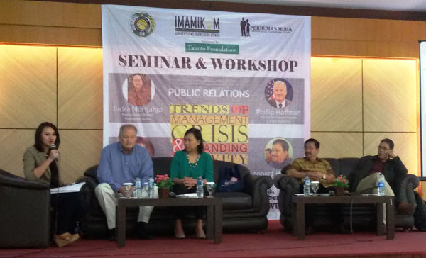 MEDAN, KabarMedan.com | Ikatan Mahasiswa Magister Ilmu Komunikasi (IMAMIKOM) Universitas Sumatera Utara, PERHUMAS Muda USU, dan Tanoto Foundation, menggelar Seminar dan Workshop Public Relations dengan thema “Trend Of Management Crisis And Branding Activity”, di Gedung Raz Plaza, Jalan Dr Mansyur Medan, Selasa (29/9/2015) .