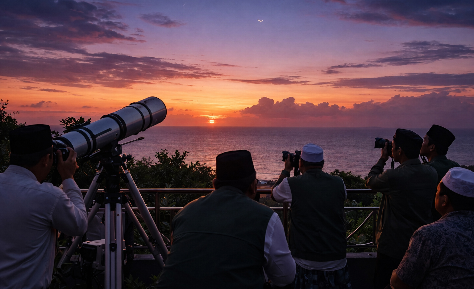 Ilustrasi pemantauan hilal.