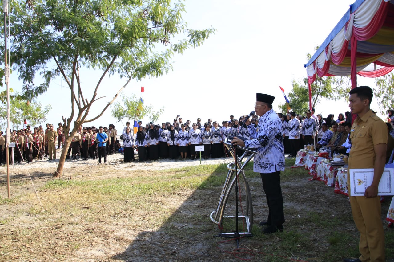 SERGAI,KabarMedan.com | Jajaran Pemerintah Kabupaten Serdang Bedagai (Sergai), memperingati hari Guru yang dirangkai dengan penanaman pohon dalam rangka hari Lingkungan Hidup, di Bumi Perkemahan Pramuka Dusun XI Pulo, Desa Kota Pari Kecamatan Pantai Cermin, Senin (26/11/2018).