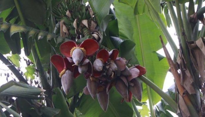 MEDAN, KabarMedan.com | Keberadaan pohon pisang berjantung 10 yang tumbuh di tanah kosong yang berada di Jalan Suka Rela, Medan Johor, menjadi tontonan warga dan pengguna jalan.