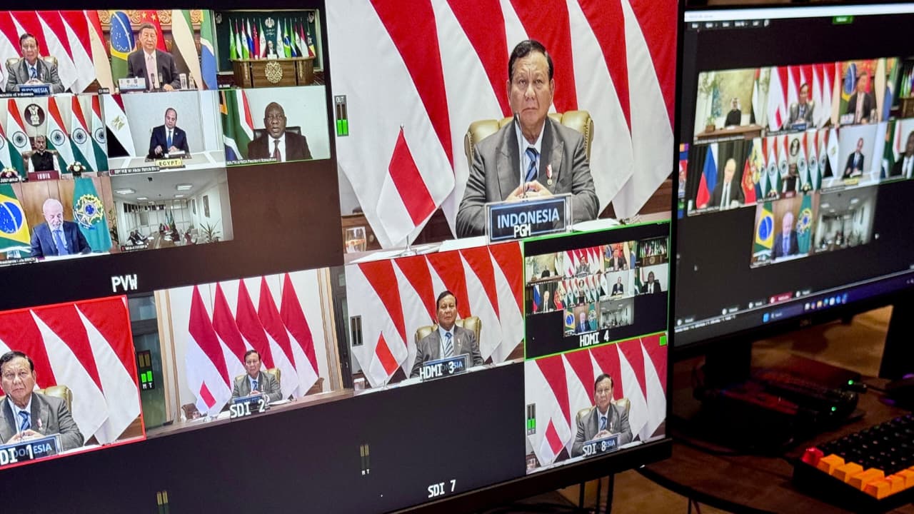 “Merupakan kehormatan besar bagi saya untuk bergabung dalam pertemuan yang sangat penting ini. Indonesia memandang BRICS sebagai pilar yang sangat kuat bagi stabilitas dan harapan dalam situasi geopolitik internasional saat ini,” ujar Presiden Prabowo saat menghadiri BRICS Leaders Virtual Meeting dari kediaman pribadinya di Kertanegara, Jakarta Selatan, pada Senin, 8 September 2025.