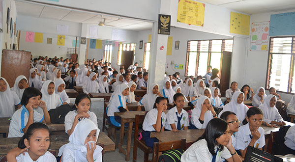 MEDAN, KabarMedan.com | Ratusan remaja Sumatera Utara berteriak dengan keras “Kita Hebat, Berani Beraksi”. Berkali-kali teriakan yel-yel itu terdengar saling bersahutan antara Master of Ceremony (MC) dan ratusan pelajar pada acara roadshow peningkatan pengetahuan komprehensive tentang HIV/AIDS bagi remaja di SMK Yayasan Pendidikan Islam (YPI) Amir Hamzah dan SMP Taman Siswa, Selasa (12/1/2016).