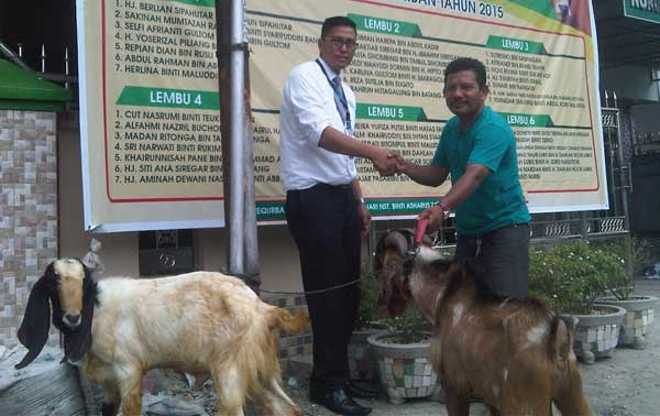 “Manajemen Santika Medan menyumbang masing-masing dua ekor kambing ke Mushollah Nurul Hidayah di Jalan Pendidikan, Medan Tembung, dan Mesjid Ar-Rahim di Jalan M Yacub, Medan Perjuangan. Kedua masjid menerima sumbangan kami dengan baik. Tahun ini memang kami berkomitmen untuk memberikan ke Mushollah dan Mesjid tersebut, karena tahun lalu kami menyumbang ke Mesjid Ubudiah di Jalan Kejaksaan dan Mesjid Al-Jamik di Jalan Taruma,” kata Nafsi, Rabu (23/9/2015).