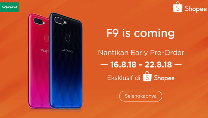 JAKARTA, KabarMedan.com | Shopee bekerjasama dengan OPPO meluncurkan produk OPPO F9 yang sudah sangat dinantikan. OPPO F9 akan tersedia untuk pemesanan pre-order mulai 23 Agustus 2018.