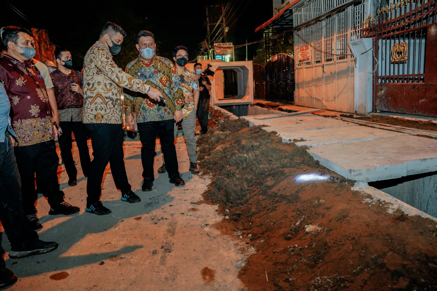 MEDAN, KabarMedan.com | Wali Kota Medan, Bobby Nasution meninjau langsung pengerjaan drainase di Jalan Sei Belutu Kecamatan Medan Selayang, Kamis (6/1/2022) malam.