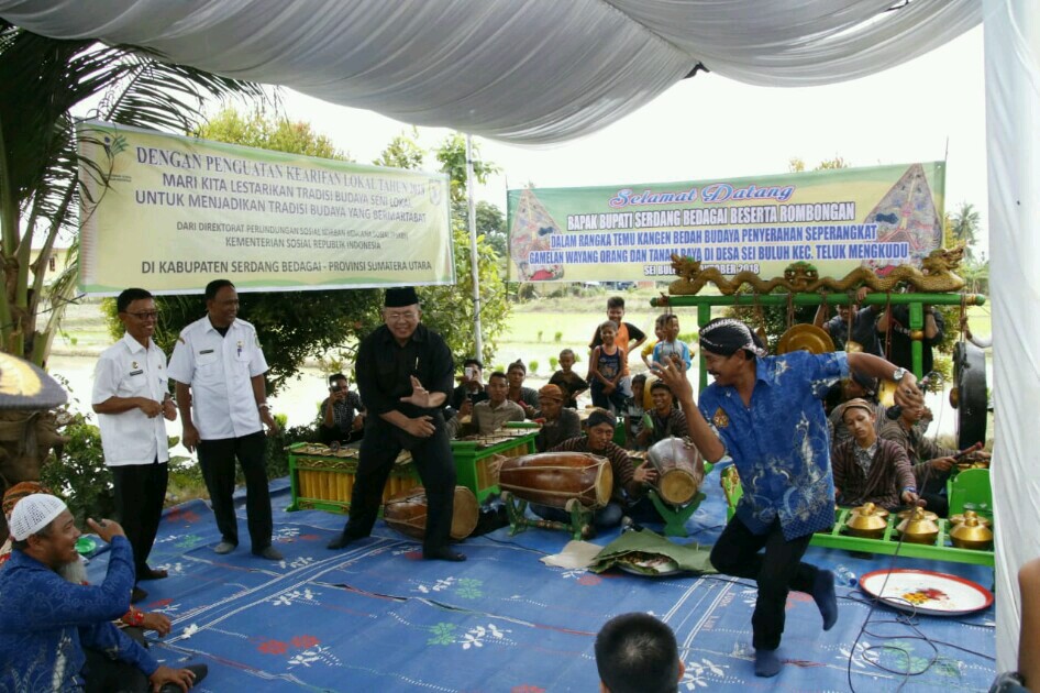 SERGAI,KabarMedan.com | “Atas nama Pemerintah Kabupaten Serdang Bedagai (Pemkab Sergai) beserta jajaran mengucapkan selamat kepada pengurus dan anggota Paguyuban Temu Kangen Bedah Budaya yang telah menerima bantuan penguatan kearifan lokal berupa alat musik tradisional dari Direktorat Perlindungan Sosial Korban Bencana Sosial Kemensos RI”.