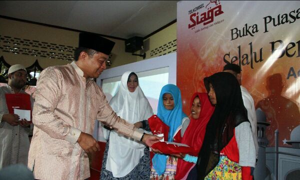 ACEH, KabarMedan.com | Dengan mengedepankan tema “Selalu Berbagi dan Melayani”,  Telkomsel Siaga tahun ini kembali menggelar kegiatan kepedulian sosial selama bulan Ramadhan 1436 H dengan memberikan santunan dan Paket Lebaran kepada 8000 anak yatim/dhuafa dari 40 yayasan panti asuhan di Indonesia. Selain itu diberikan pula bantuan perlengkapan ibadah, serta renovasi untuk sejumlah yayasan/panti asuhan tersebut.