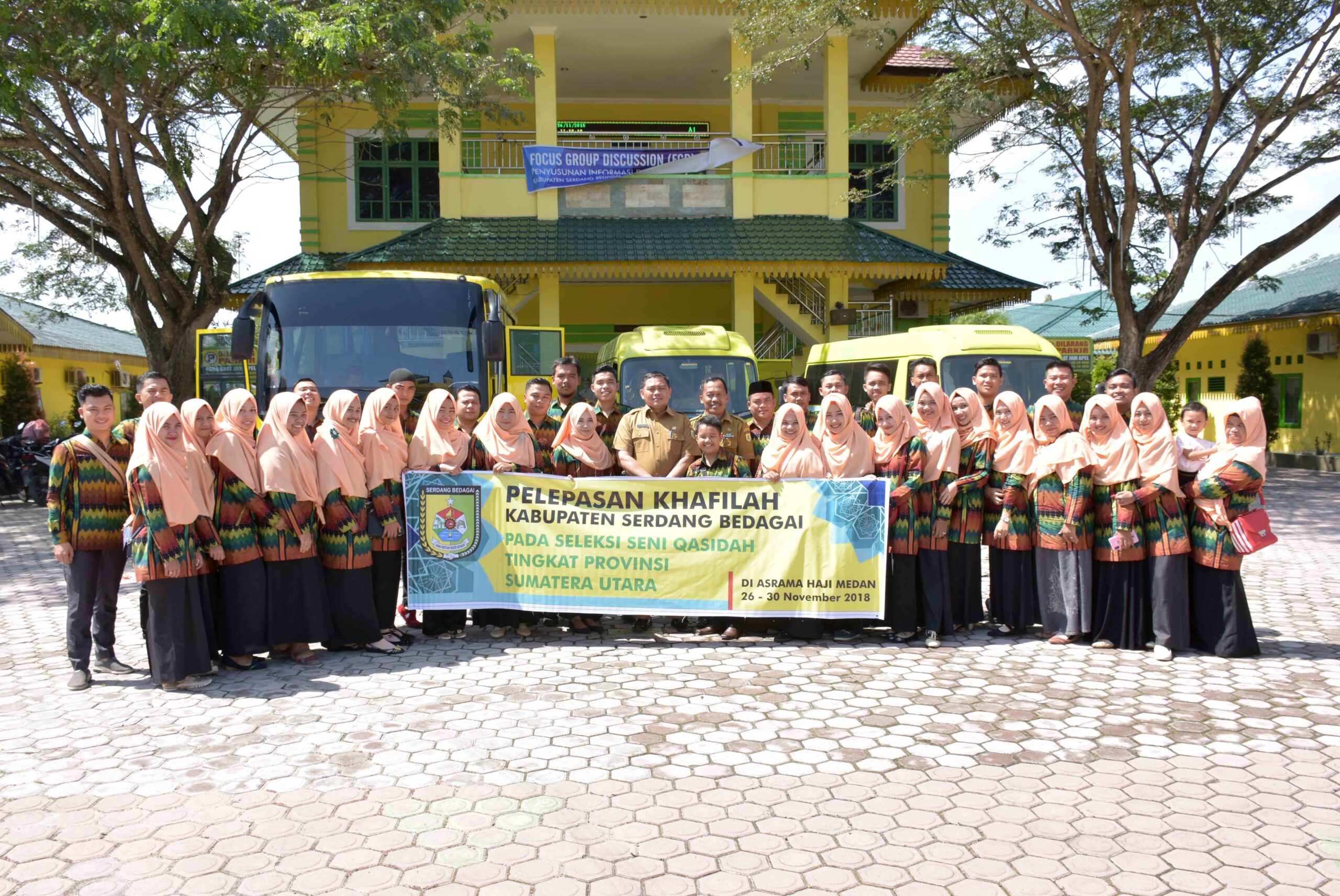 SERGAI,KabarMedan.com | Bupati Serdang Bedagai (Sergai), Ir. H. Soekirman diwakili Assisten Ekbangsos Ir. H. Kaharuddin melepas tim Seni Qasidah/Nasyid asal Sergai untuk mengikuti seleksi Seni Qasidah/Nasyid XVI tingkat Provinsi Sumatera Utara Tahun 2018. Pelepasan digelar di aula H. T. Rizal Nurdin Kantor Bupati Sergai, Senin (26/11/2018).