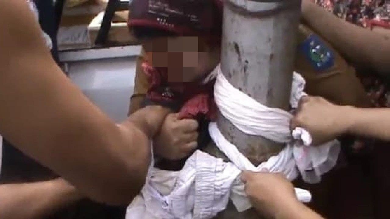 Dalam video yang beredar viral, terlihat seorang wanita menggunakan seragam ASN menjadi bulan-bulanan massa. Wanita tersebut diikat di tiang listrik setelah salah seorang korban menyadari dirinya diitipu oleh pelaku.